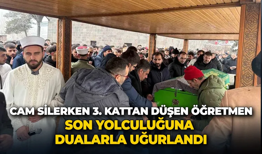 Erzurum’da evinin camlarını silerken dengesini kaybederek aşağı düşen öğretmenin cenazesi gözyaşları arasında toprağa verildi.