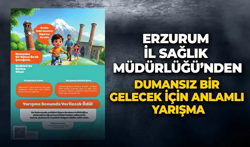 Erzurum İl Sağlık Müdürlüğü’nün hazırladığı, çocuk ve gençlerde sigara karşıtı farkındalık oluşturmak ve yetişkinleri sigarayı bırakmaya teşvik etmek amacıyla anlamlı bir yarışma hayata geçirildi. "Benim Kahramanım Sigarayı Bıraktı-Dumansız Bir Dünya Bırak, Bisikleti de Bizden Olsun" sloganıyla düzenlenen yarışma, ortaokul öğrencilerini kapsıyor.