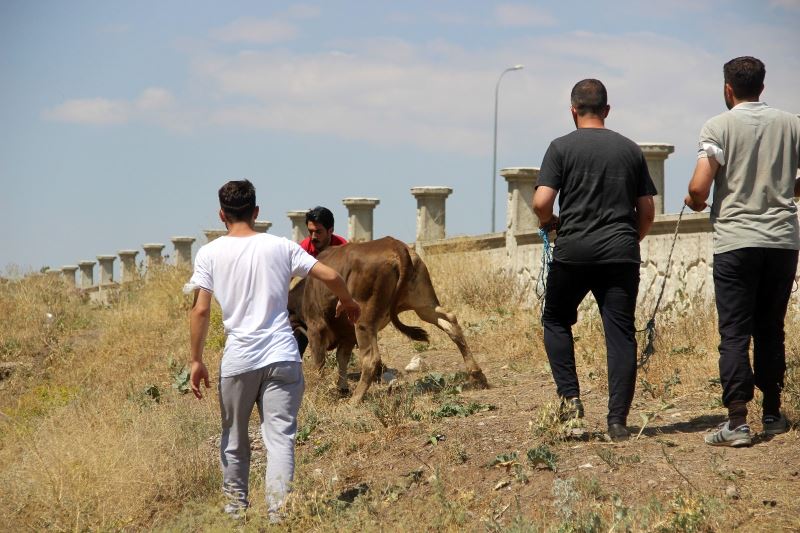 Diğer yandan Atlama Kuleleri’nin altında bulunan mezbahanede sıra bekleyen vatandaşlar kurbanlık dügeyi elinden kaçırdı. Atlama Kulelerine kadar koşan dügeyi yakalamak için vatandaşlar yoğun çaba sarf etti.