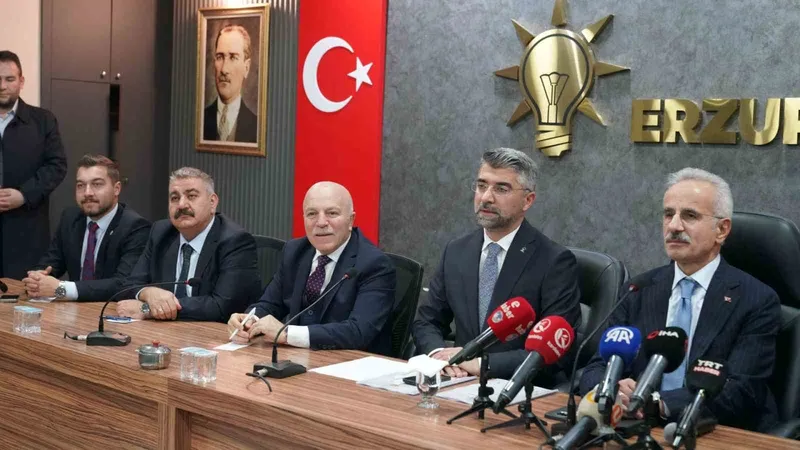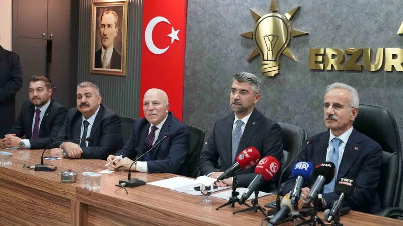 Beraberinde Erzurum milletvekilleri Selami Altınok, Mehmet Emin Öz, Abdurrahim Fırat, Erzurum Büyükşehir Belediye Başkanı Mehmet Sekmen ile AK Parti İl Başkanlığında vatandaşlarla bir araya gelen Ulaştırma ve Altyapı Bakanı Abdulkadir Uraloğlu, Erzurum’da yapımına devam edilen ulaşım yatırımlarıyla ilgili bilgi verdi.