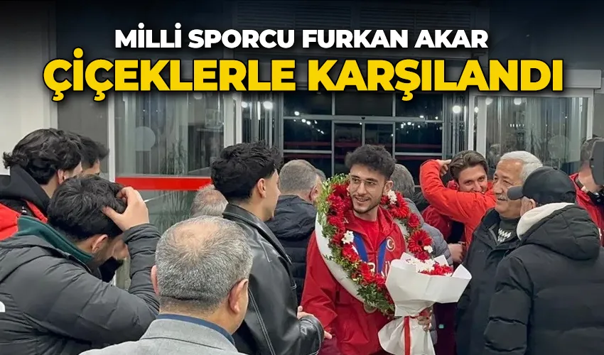 Milli sporcu Furkan Akar çiçeklerle karşılandı