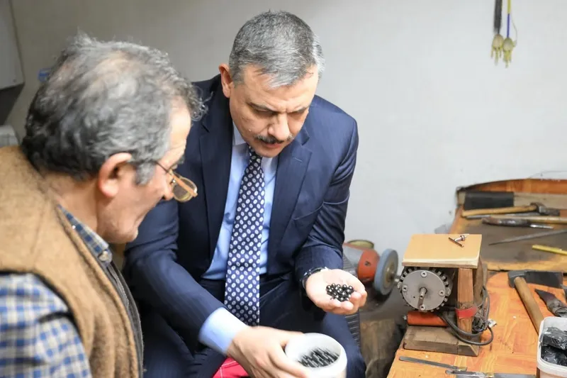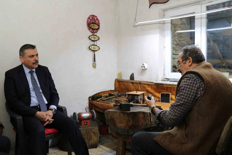 Vali Mustafa Çiftçi, Oltu taşı sanatına 45 yıldır emek veren, 63 yaşındaki usta Halis Aydın’ı atölyesinde ziyaret etti. Geleneksel yöntemlerle, büyük bir sabır ve göz nuruyla işlenen Oltu taşı ürünleri hakkında bilgi alan Vali Çiftçi, Oltu taşı işlemeciliğinin kültürel mirasımızdaki yeri ile bu kadim sanatın ustalık geleneğiyle gelecek nesillere aktarılmasının taşıdığı önemi vurguladı.