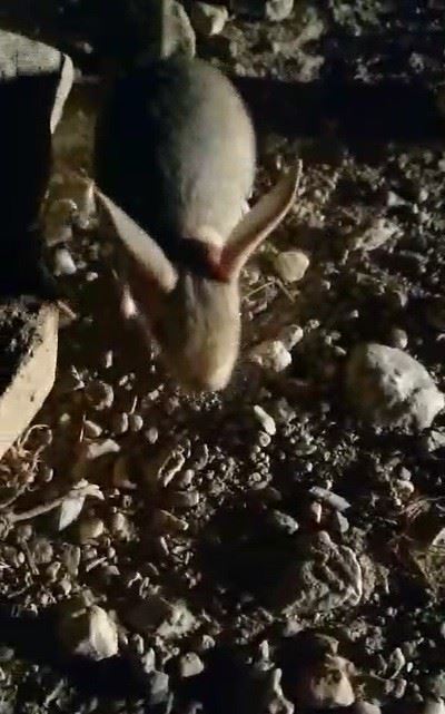 ERZİNCAN (İHA) - Erzincan’ın Çağlayan beldesinde Dünya Doğa ve Doğal Kaynakları Koruma Birliği'nin (IUCN) 'kırmızı' listesinde bulunan kanguru faresine benzerliği nedeniyle karıştırılan Arap tavşanı, gece saatlerinde yöre halkı tarafından görüntülendi.
