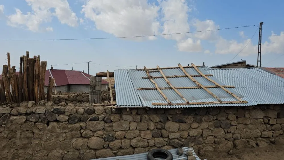 Bitlis'in Adilcevaz ilçesinde etkili olan rüzgar, ahır ve eklentilerinin çatılarının uçmasına neden oldu.