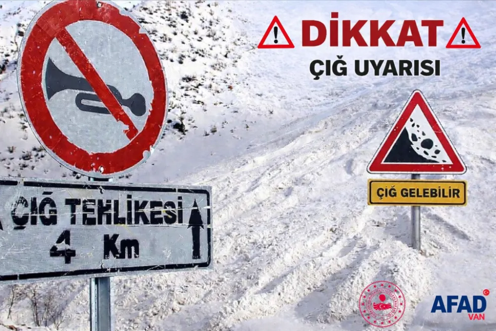 AFAD İl Müdürlüğünden yapılan açıklamada, meteorolojik değerlendirmelere göre bölgede etkili olan sulu kar yağışı, yağmur ve hava sıcaklıklarında yaşanan artış nedeniyle özellikle Van ve ilçelerinin yüksek kesimlerinde mevcut kar örtüsünün ağırlaşması ve zayıflaması sonucu çığ riskinin arttığı belirtildi. Açıklamada, "Isınan hava ile birlikte kar tabakasının dengesini kaybetmesi; eğimli, dik yamaçlar ve vadi içlerinde ani çığ oluşumlarına neden olabileceğinden vatandaşlarımızın dikkatli ve tedbirli olması büyük önem arz etmektedir. Bu kapsamda; dik ve eğimli yamaçlar, vadi içleri ve kar birikiminin yoğun olduğu bölgelerden uzak durulması, sulu kar yağışı ve yağmur sonrası kar kütlesinin ağırlaşabileceği alanlarda gereksiz bulunulmaması, kırsal alanlarda yaşayan vatandaşlarımızın ve hayvancılıkla uğraşanların barınaklarını çığ riskine karşı güvenli bölgelerde konumlandırmaları, avlanma, doğa yürüyüşü, dağcılık gibi faaliyetlerin zorunlu olmadıkça ertelenmesi, kara yollarında seyir halinde olan sürücülerin özellikle yüksek geçitler, dar vadiler ve yamaç altlarında dikkatli olmaları, ekiplerin uyarı ve yönlendirmelerine uymaları, resmî kurum ve kuruluşlar tarafından yapılan uyarıların yakından takip edilmesi hayati önem taşımaktadır. Muhtemel bir acil durumda 112 Acil Çağrı Merkezi ile iletişime geçilmesi gerekmektedir" denildi.
