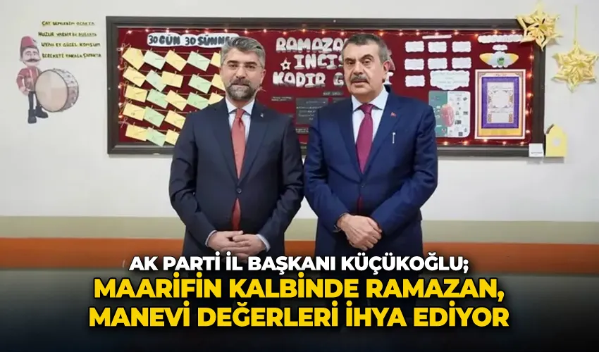 Başkan Küçükoğlu, Milli Eğitim Bakanı Yusuf Tekin’in öncülüğünde başlatılan "Maarifin Kalbinde Ramazan" etkinliklerinin manevi değerlerin yaşatılması, genç dimağlarda Ramazan şuurunun yeniden canlı bir şekilde hayat buluyor oluşunun, gençlerin manevi değerler içerisinde gözlerindeki ışığın kalplerindeki iman ve ihlas bilincinin şahikaya çıktığı bir dönemin de başlangıcı olduğunu söyledi.