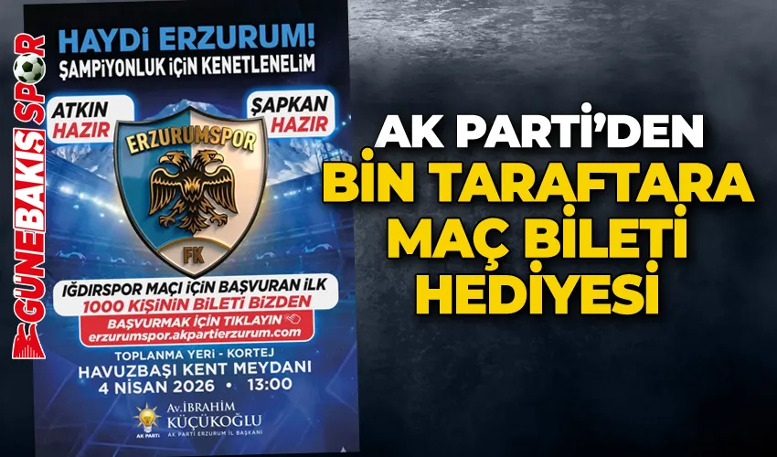 "Haydi Erzurum! Şampiyonluk İçin Kenetlenelim" sloganıyla yapılan çağrıda, Iğdırspor maçını izlemek için başvuran ilk bin taraftarın bileti AK Parti Erzurum İl Başkanlığı tarafından hediye edilecek.
