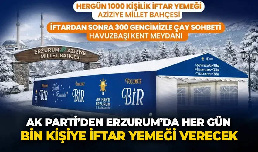 Aziziye millet Bahçesi’nde her gün bin kişilik iftar yemeği verecek olan AK Parti Erzurum İl Başkanlığı, Havuzbaşı kent meydanında da gençlere yönelik çay sohbeti etkinliği gerçekleştirecek.