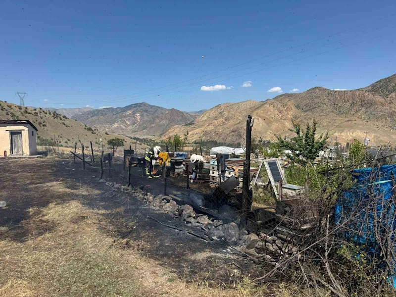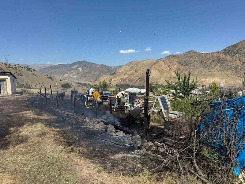 Erzurum’da meydana gelen yangında arı kovanları yandı.