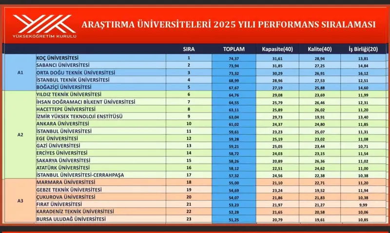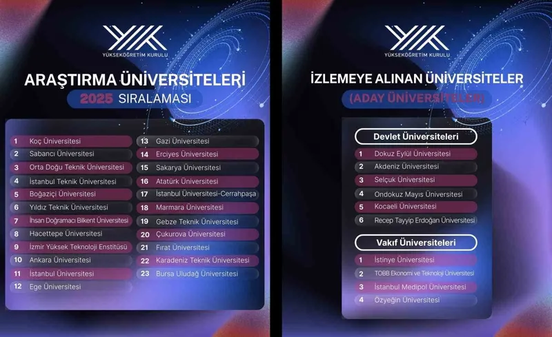 Türkiye genelinde 23 araştırma üniversitesi ile 6 aday araştırma üniversitesinin katılımıyla yapılan toplantıda kurumların güncel performansları, gelişim alanları ve araştırma kapasitesini güçlendirmeye yönelik süreçler ayrıntılı biçimde ele alındı. Toplam 208 yükseköğretim kurumunun değerlendirildiği süreçte, Araştırma Üniversitesi statüsüne sahip ilk 23 üniversiteden 22’si 2025 yılı sıralamasında yerini korumayı başardı. Sıralamadaki tek değişiklik ise aday statüsünde gerçekleşmiş olup, Gaziantep Üniversitesinin yerine Recep Tayyip Erdoğan Üniversitesi aday listesine dahil edildi.