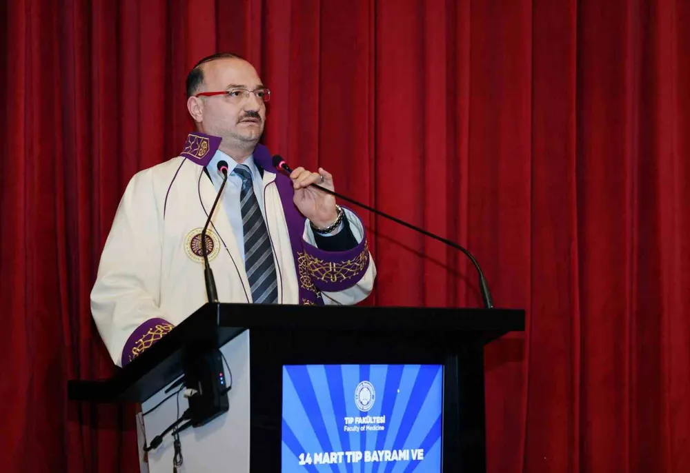Tıp Fakültesinin sağlık hizmeti sunumu, nitelikli hekim yetiştirilmesi ve bilimsel araştırmalar alanında önemli başarılara imza attığını belirten Hacımüftüoğlu, öğretim üyelerinin özverili çalışmaları ve öğrencilerin yüksek motivasyonu sayesinde üniversitenin sağlık bilimlerinde her geçen gün daha ileri bir noktaya ulaştığını ifade etti. Konuşmasında akademik unvan alan öğretim üyelerini de tebrik eden Hacımüftüoğlu, yeni unvanlarının hayırlı olması temennisinde bulundu.