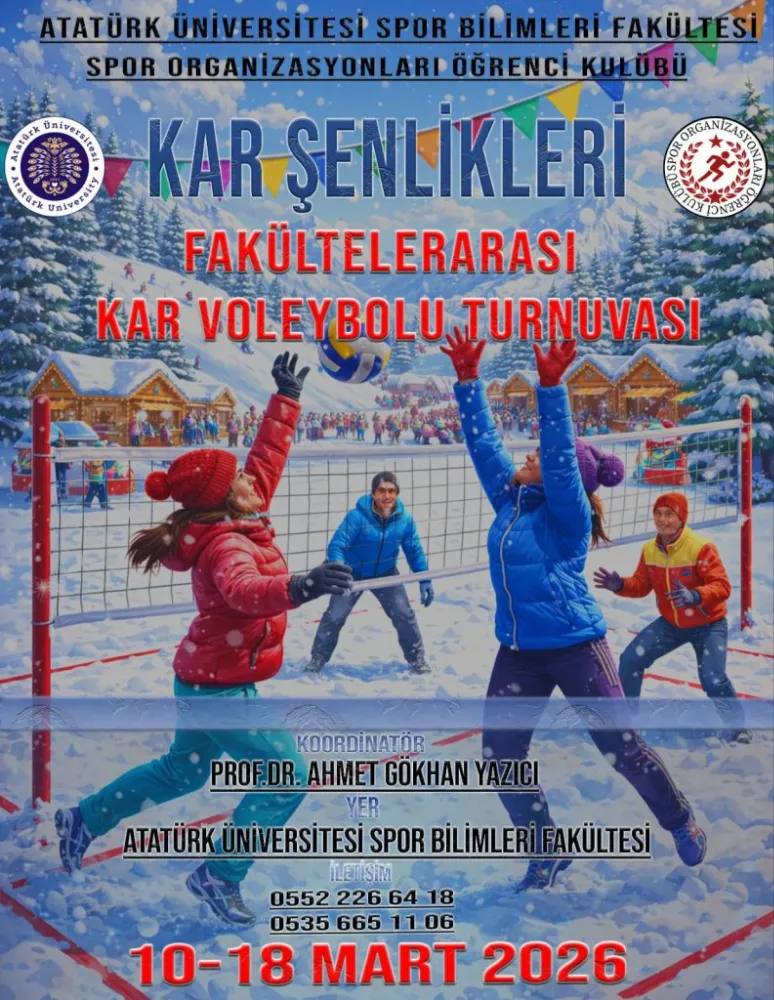 Kar voleybolu turnuvası, Atatürk Üniversitesi bünyesindeki fakültelerden oluşturulacak takımların katılımıyla gerçekleştirilecek. Öğrenciler hem spor yapma fırsatı bulacak hem de fakültelerini temsil ederek kıyasıya bir mücadele ortaya koyacak.
