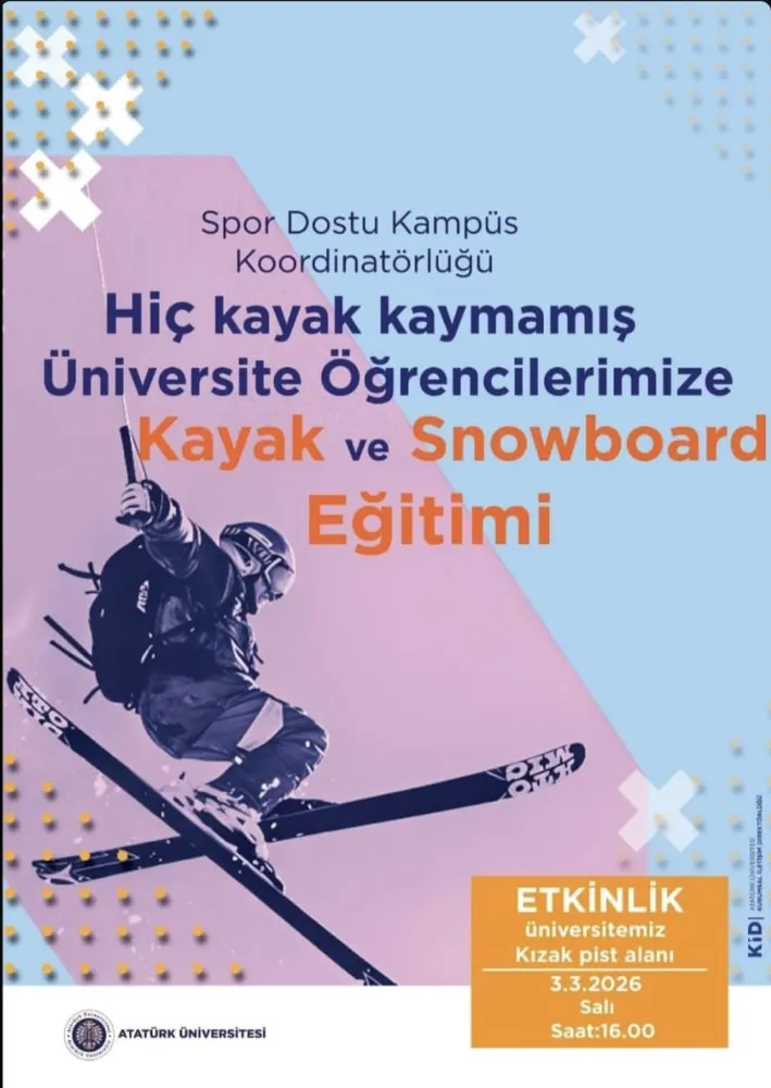 Atatürk Üniversitesi, "Spor Dostu Kampüs" vizyonu doğrultusunda öğrencilerini kış sporlarıyla buluşturmaya devam ediyor. Erzurum’un kış turizmi potansiyelini kampüs yaşamıyla birleştiren Atatürk Üniversitesi Spor Dostu Kampüs Koordinatörlüğü, daha önce hiç kayak yapma fırsatı bulamamış öğrenciler için özel bir eğitim programı başlatıyor.
