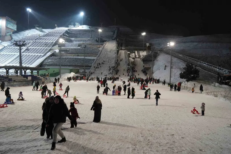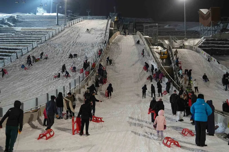 Erzurum’da Atlama Kuleleri’nde iki gün devam eden "Kızak Şenliği" coşkuyla ve yoğun bir katılımla devam etti. Aileler ve çocukların adeta mahşeri kalabalığa sebep olan etkinlikte eğlence bir an olsun durmadı. Kızaklar kayıldı, halaylar çekildi, sahlep ikramı ile katılımcıların içi ısındı. 7’den 70’e herkesin doyasıya eğlendiği bu güzel günde yüzler hep gülümsedi. Erzurum Gençlik ve Spor İl Müdürlüğü tarafından yapılan organizasyonda kızaklarını alarak atlama kulelerinin olduğu alana gelen çocuklar doyasıya eğlenceli ve coşkulu anlar yaşadı. Yapılan açıklamada, "Atlama Kulelerimizde devam eden tadilat sürecine rağmen, gerekli tüm güvenlik ve kontrol önlemlerini alarak tesisimizi halkımızın kullanımına açtık. Hafta sonu gerçekleştirdiğimiz programda vatandaşlarımızı misafir ettik, alanda ikramlarda bulunduk. Hemşehrilerimizin bu heyecanı ve mutluluğu bizler için en büyük motivasyon oldu. Halkımızı sporla, özellikle de kış turizmiyle buluşturmayı önceleyen anlayışımızla; imkânlarımız el verdiği sürece tesislerimizi toplumumuzun hizmetine sunmaya devam edeceğiz" denildi.