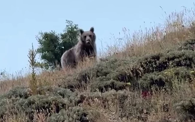 Erzurum’da bir çoban, yaban hayatta gördüğü ayıyı bağırarak korkuttu ve sonrasında kaçırttı.