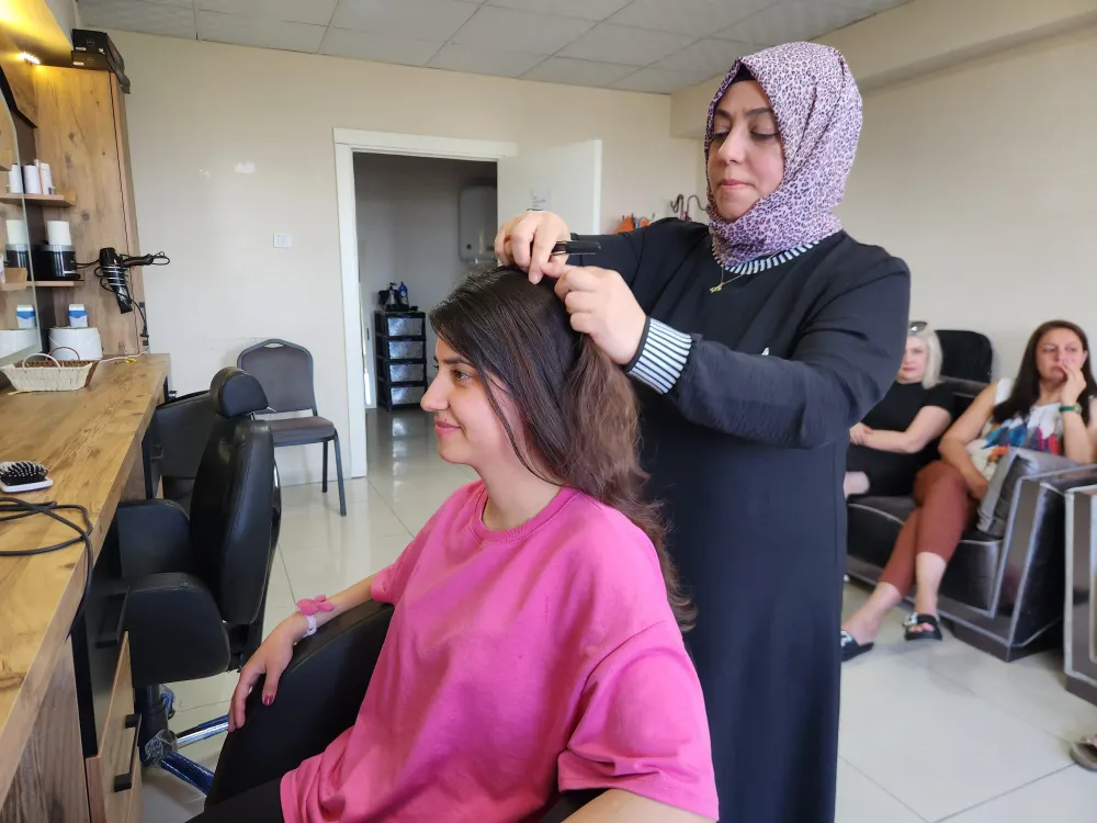 Eda Doğan ise küçük yaşlardan itibaren babasının mesleğine aşina olduğunu vurgulayarak, "Annemle beraber kuaförlük kursunda 4 aydır eğitim görüyoruz. Bir arkadaşın tavsiyesi üzerine yazıldık. Bunun dışında, babam da erkek kuaförü, yıllardır bu mesleği yapıyor. Küçükken saçlarımı hep babam keserdi, boyardı. İlerleyen zamanlarda annemle birlikte kendimize güzel bir yer açıp çalıştırmayı düşünüyoruz" ifadelerini kullandı.