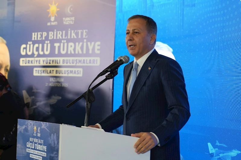 "Erzurum da bu vizyonun öncüsü oldu. Çünkü biz inanıyoruz güçlü Türkiye’nin yolu, güçlü nesiller yetiştirmekten geçer. Ulaşımda tünellerle, köprülerle, otobanlarla sadece yolları değil; doğuyla batıyı, kuzeyle güneyi birleştirdik. Sadece şehirleri değil, gönülleri birbirine bağladık" diyen Bakan Yerlikaya, "Devletimiz tüm kurumlarıyla, bakanlıklarımız kendi alanlarıyla tarihi başarılara imza attı, atmaya da devam ediyor. İçişleri Bakanlığı olarak bizler de huzurun ve güvenliğin teminatı olarak suçla, terörle, uyuşturucuyla mücadelede tavizsiz bir duruş sergiliyoruz. Şehir eşkıyalarının, zehir tacirlerinin hedefinde olan gençlerimize sesleniyorum: Sakın ola onların yalan dünyalarına kanmayın. Onlarla ahbaplık etmeyin. Sularından içmeyin. Sofralarına oturmayın. Devletimiz güçlüdür. Tekrar ediyorum devletimiz çok güçlüdür. Zehir tacirlerine de, şehir eşkiyalarına da dünyayı başlarına yıkacak kadar güçlüdür" dedi.