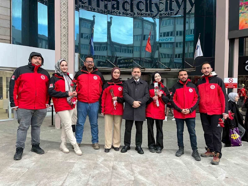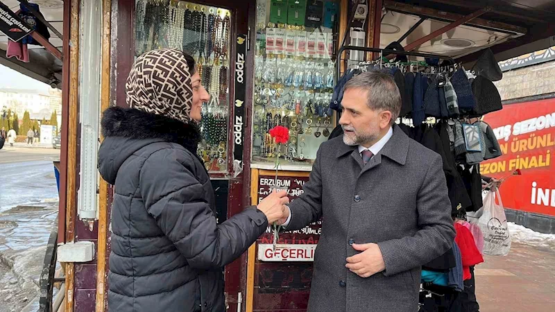 Yakutiye Belediye Başkanı Mahmut Uçar, Dünya Kadınlar Günü vesilesiyle, kent merkezinde kadınlara karanfil dağıttı.