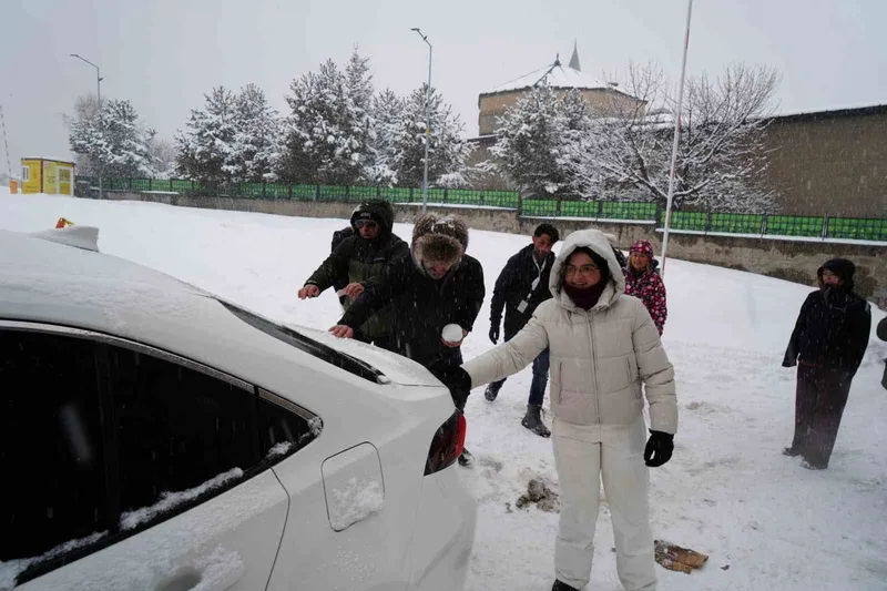 Anadolu turuna Van’dan başlayan Belçikalı turistler, yolculuklarının Erzurum durağında kışın ve karın keyfini doya doya yaşadı. Kartopu savaşı yapan turistler, yokuşta kalan araca da el atarak saplandığı yerden kurtardılar.