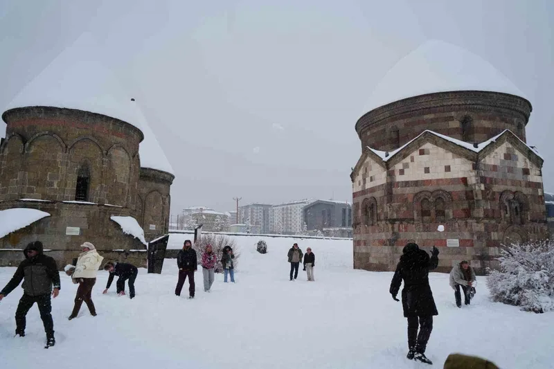 Son yıllarda özellikle kış turizmi noktasında popüler olan ve yüzbinlerce insanın kayak yapmak için geldiği Palandöken Kayak Merkezi’ne sahip olan Erzurum; barındırdığı zengin gastronomisi, kadim kültürü ve tarihi değerleriyle yerli-yabancı turistleri kendine çekmeye devam ediyor. Bunlardan birisi de Belçikalı turist kafilesiydi. Çıktıkları Anadolu gezisinde Erzurum’da mola veren Belçikalı turistlerin, kentin tarihi ve kültürel dokusuyla birlikte yağan kara hayranlığı adeta coşkuya döndü. Çifte Minareli Medrese’yi ziyaret eden turistler burada kartopu savaşı yaptılar. Üçkümbetler’e doğru kar yağışı eşliğinde yürüyen yabancı turistler burada yokuşta kalan otomobile el atarak saplandığı yerden çıkardılar. Sürücü kendilerine teşekkür etti.