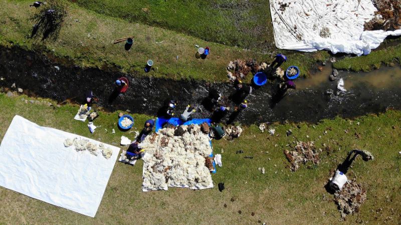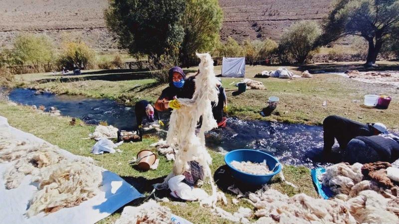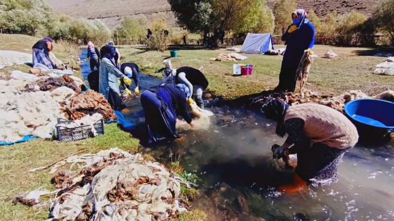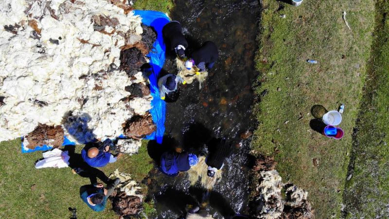 Taşbaşı, yünün yıkanmadan tezgaha gitme süresinin en az 3 hafta olduğunu belirterek, “Ustalarımız akarsuyun yanında yünü tokaçlayarak yıkıyorlar. Yünün yıkandığı zaman köpürmesi ve içerisindeki kirin bir şekilde gitmesi gerekiyor. Yıkandıktan sonra yünü kurutacaklar, sonra tekrar yıkayacaklar ve sonra üçüncü kez yıkadıktan sonra tekrar kurutacaklar. Sonrasında çırpılacak, taranacak ve iplik haline getirilecek. Burada 1 hafta yıkama sürecek. Tezgaha atılacak süre yaklaşık 3 haftayı buluyor. En kaliteli yünü ehramda kullanıyoruz, bir altını kilimde geriye kalanları ise çorap ve yorgan da kullanıyoruz” şeklinde konuştu.