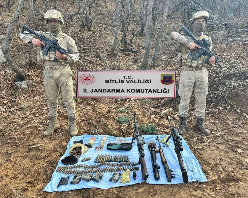 Bitlis Valiliğinden yapılan açıklamada, İl Jandarma Komutanlığı unsurlarınca yapılan istihbarı çalışmalar neticesinde; il merkezi ile Hizan ve Tatvan kırsalında BTÖ mensuplarını etkisiz hale getirmek maksadıyla operasyon düzenlendiği belirtildi. Açıklamada, "İcra edilen tarama ve arama faaliyetinde araziye gömülü halde, 1 adet Bixi makineli tüfek, 2 adet keskin nişancı tüfeği, 1 adet el bombası, 1 adet antipersonel roketatar mühimmatı, 3 adet roketatar sevk fişeği, 1 adet antitank roketatar başlığı, 1 adet ateşleme anahtar sistemi, 447 adet çeşitli çap ve markalarda mühimmat, 5 adet Kanas keskin nişancı tüfeği şarjörü, 3 adet keskin nişancı silah dürbünü, 1 adet holografik nişan aleti, 1 adet araç telsizi, 16 adet blok haline dönüştürülmüş pil, 200 metre elektrik kablosu, 2 adet mutfak tüpü, 1 adet muhtelif EYP yapım malzemeleri ve çok miktarda giyim, gıda ve yaşam malzemesi ele geçirilmiştir. Ele geçirilen malzemeler Bitlis Cumhuriyet Başsavcılığının talimatıyla delil niteliği taşıyanlar muhafaza altına alınmış, diğer malzemeler ise yerinde imha edilmiştir. Güvenlik güçlerimiz, bölge halkımızın da desteği ile huzur ve güvenliği sağlamak maksadıyla ilimiz genelinde operasyonlarını artırarak terörle mücadeleyi kararlılıkla sürdürecektir” denildi.