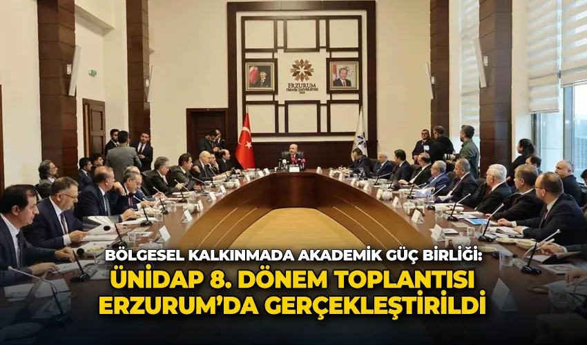 DAP Bölgesi’ndeki üniversiteler arasında iş birliğini güçlendirmek, kaynakları verimli kullanmak ve bölgesel kalkınmaya akademik bir ivme kazandırmak amacıyla tesis edilen ÜNİDAP, 8. Dönem Toplantısı için Erzurum’da bir araya geldi. Toplantıya teşrif eden YÖK Başkanı Prof. Dr. Erol Özvar, bölgesel kalkınmada üniversitelerin üstlendiği kritik role dikkat çekerek, yükseköğretim kurumlarının yerel potansiyeli küresel rekabete taşıma noktasındaki stratejik önemini vurguladı.