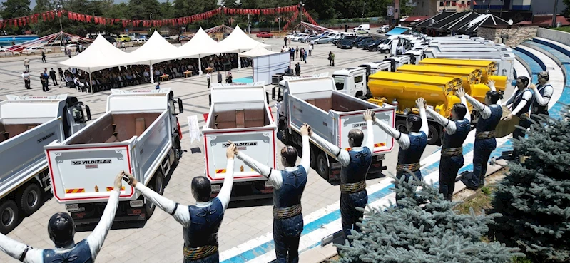 Erzurum Büyükşehir Belediyesi, 19. Araç Filosu’nu düzenlediği törenle tanıttı. Kırsal hizmetlerde kullanılmak üzere alınan iş makinları, kamyon ve asfalt araçları Havuzbaşı’nda görücüye çıktı.