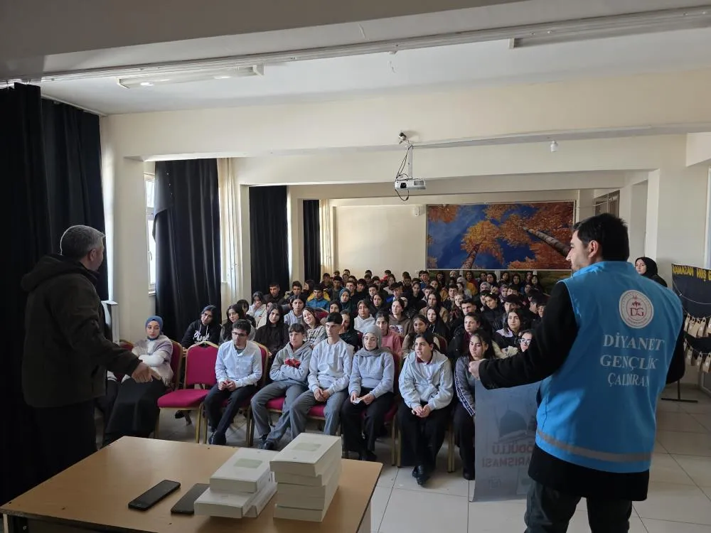 Müftülük bünyesinde faaliyet gösteren Gençlik Koordinatörlüğü ekipleri, Çaldıran Anadolu İmam-Hatip Lisesi’ni ziyaret ederek öğrencilerle bir araya geldi. Yarışmanın içeriği ve başvuru süreci hakkında detaylı bilgiler paylaşan ekipler, kayıt yaptıran her öğrenciye yarışma kapsamında sorumlu oldukları kitapları ücretsiz olarak takdim etti. Gençlerin yoğun ilgi gösterdiği tanıtım etkinliğinde, okuma kültürünün önemi vurgulandı.