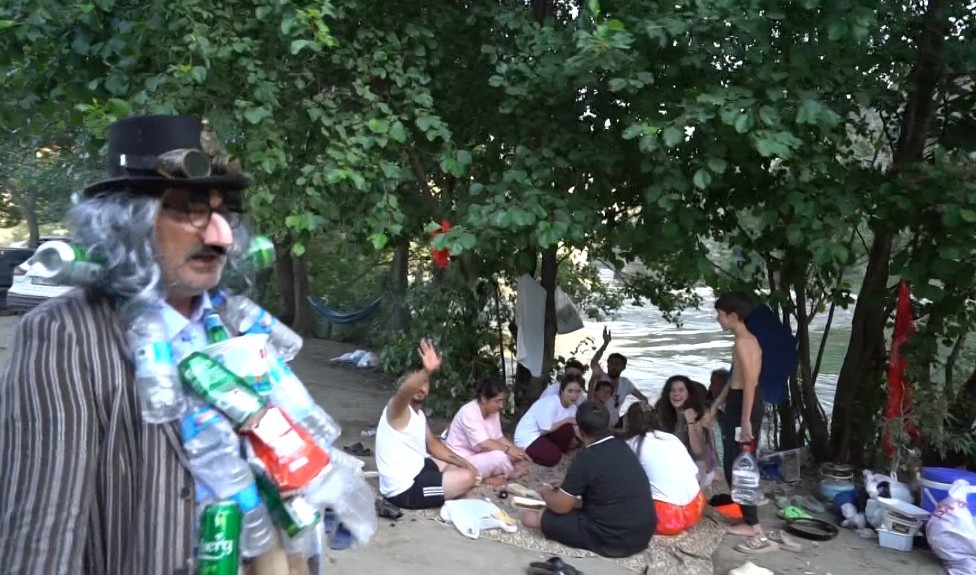 Tunceli’de yaşayan ve Arêye Kay (Oyun Değirmeni) isimli tiyatro grubunun yönetmenliğini yapan Yılmazcan Şare, kentteki çevre kirliliğine dikkat çekmek ve doğanın korunması konusunda duyarlılık oluşturmak amacıyla vücuduna bağladığı çöpler ve giydiği palyaço kıyafetiyle piknik ve mesire alanlarını gezdi.