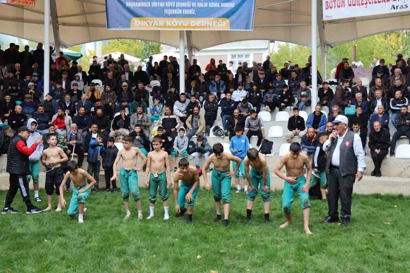 Güreşlerde iki minik güreşçinin alandaki hareketleri ve müsabakaları ise ilgi odağına döndü.