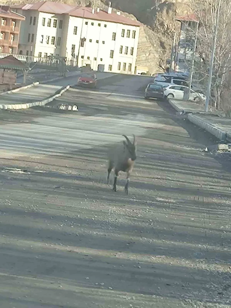 Dağ keçisi ilçe merkezine indi: Vatandaşları hayrete düşürdü