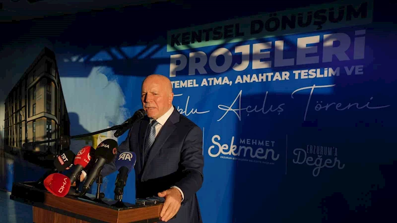 Büyükşehir Belediye Başkanı Mehmet Sekmen ise kentsel dönüşümün bir gerçek olduğunu, illerin, ilçelerin, köylerin ve mahallelerin yeniden yapılanması gerektiğini vurgulayarak, "6 Şubat depremlerinde 11 vilayetimiz yerle bir oldu. Büyük devletimiz Sayın Cumhurbaşkanımızın önderliğinde ekibiyle birlikte altından kalkınmaz denilen böyle büyük bir hareketin hamdolsun yavaş yavaş sonuna gelinmek üzere. Bu gerçekle hareket ederek göreve başladığımızdan itibaren şehrimizde bölge bölge kentsel dönüşüme ağırlık veriyoruz. Diğer hizmetlerimizi de geri bırakmamaya özen gösteriyoruz. Şu anda Erzurum’un 20 ilçesinde yoğun bir çalışma yürütülüyor" dedi.