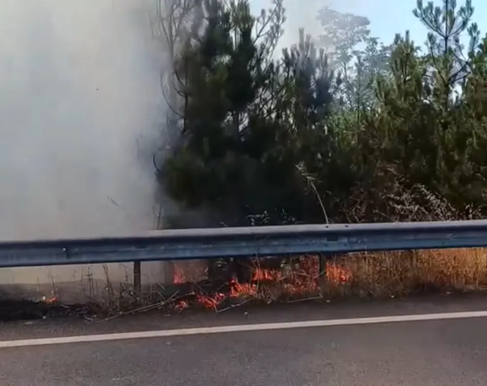 Yangında yol kenarındaki otluk alan ile birlikte çamlık olan bölgede kısmi yanmalar oluştu.