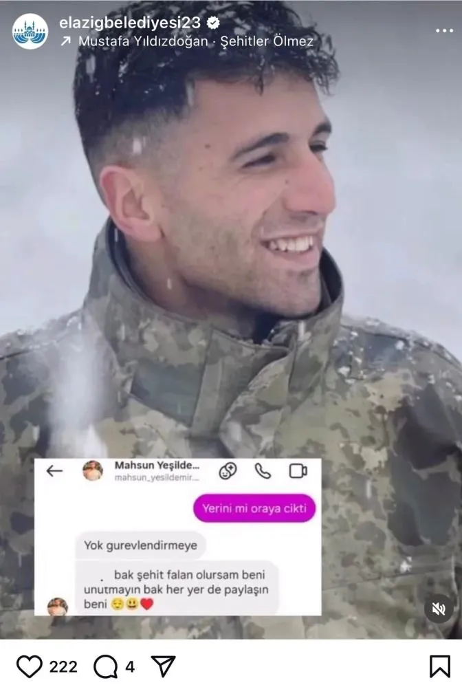 6 Temmuz 2025 tarihinde, Pençe-Kilit Harekatı bölgesinde 852 rakımlı tepede bölücü terör örgütü mensupları tarafından kullanılan bir mağarada icra edilen arama-tarama faaliyetinde, metan gazından etkilenen 12 asker şehit oldu. Şehit olan askerlerden Piyade Sözleşmeli Er Mahsun Yeşildemir’in arkadaşına attığı mesajda ‘Şehit olursam beni unutmayın her yerde paylaşın’ istediğine Elazığ Belediyesi kayıtsız kalmadı. Belediyenin sosyal medya hesabı üzerinden ‘Vatan size minnettar’ açıklamasıyla yapılan paylaşım görenleri duygulandırdı.