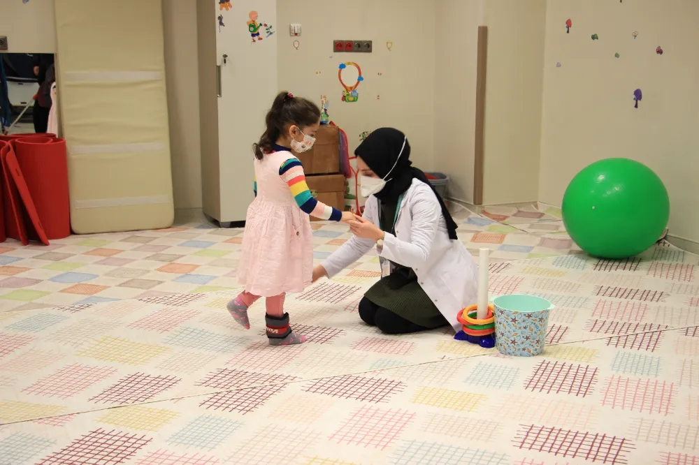Multidisipliner bir yaklaşımla hizmet sunduklarını ifade eden Fiziksel Tıp ve Rehabilitasyon Uzmanı Doç. Dr. Nevsun Pıhtılı Taş da "Merkezimizde takip ettiğimiz birçok kas hastamız var. Hastalarımız bize başvurduklarında bizim Fizik Tedavi ve Rehabilitasyon hekimleri olarak ilk amacımız öncelikle kas hastalıklarının yan etkisi veya komplikasyonlar dediğimiz hastalarımızda oluşabilecek sıkıntılarını önlemeye çalışmaktayız. Çocuk nöroloji hocalarımız tanılarını koyup medikal tedavilerini başladıklarında bize yönlendiriyorlar. Bu konuda çocuk nöroloji kliniğimizle beraber çok güzel işbirliği içerisinde çalışıyoruz. Her hastamız bize başvurduğunda hastamıza göre değerlendirip rehabilitasyon programlarını planlıyoruz. Gerekli tedavilerini yapıyoruz. Bununla beraber spastisite dediğimiz kas kasılmaları, istemsiz kasılmaları oluştuğunda gerekli medikal tedavilerin yanında ultrasonografi eşliğinde uyguladığımız botilinium toksin enjeksiyonlarıyla da hastalarımızın günlük aktivitelerini kolaylaştırıyoruz. Bağımsız hareket etmelerini sağlıyoruz" şeklinde konuştu.
