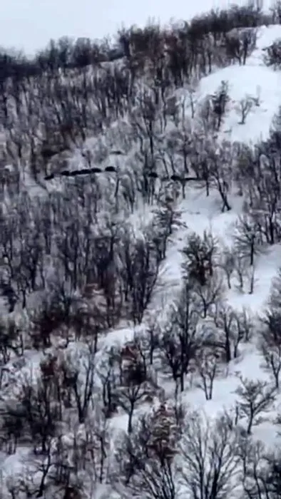 Elazığ'ın Palu ilçesine bağlı Gökdere köyü kırsalında karların üstünde domuzları gören bir şahıs, o anlar cep telefonu ile kayda altı. Sürünün kabalık olduğunu fark eden şahıs bir yandan çekim yaparken diğer yandan da ‘Ordu geliyor' diyerek şaşkınlığını dile getirdi.