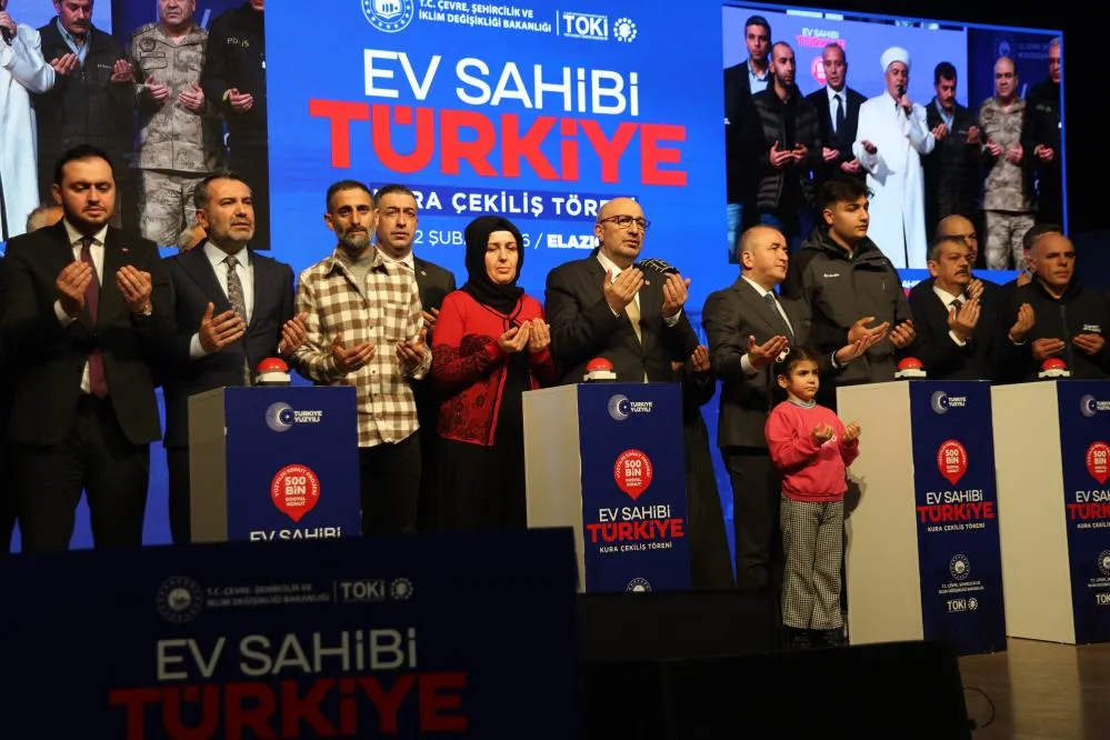 Elazığ’da Çevre, Şehircilik ve İklim Değişikliği Bakanlığı ile Toplu Konut İdaresi Başkanlığı (TOKİ) koordinesinde gerçekleştirilen Ev Sahibi Türkiye 500 bin Sosyal Konut temalı Yüzyılın Konut Projesi kapsamında Fırat Üniversitesi Atatürk Kültür Merkezinde kura çekimi töreni düzenlendi. Törenle birlikte 3 bin 825 hak sahibi yeni yuvalarına kavuşmanın heyecanını yaşadı.