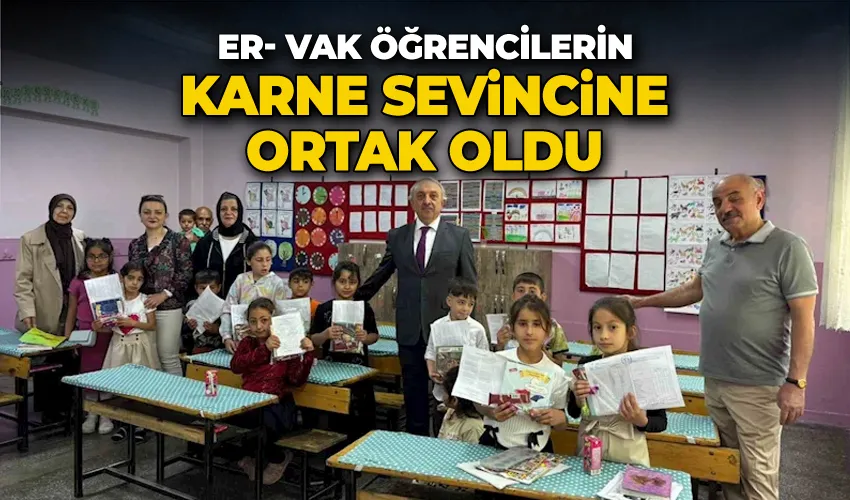 Dumlupınar İlkokulu’ndaki törene katılan Er-Vak üyeleri, öğrencilere karnelerini verip, süt ikramında bulundular. Dumlupınar İlkokulu’nda okuduğunu belirten Er-Vak Başkanı Erdal Güzel, bu okulda güzel hatıralarının olduğunu ve bu gün öğrencilerle birlikte olmakla hatıra defterine yeni bir hatıra eklemenin mutluluğunu yaşadığını belirterek bu fırsatı veren Okul Müdürü Mehmet Yakut ve öğretmenlerine teşekkür etti. Güzel, öğrencilerin tatil günlerini iyi değerlendirmelerini, çocukluk günlerini doyasıya yaşamalarını tavsiye edip başarı dileklerinde bulundu.