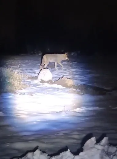 Erzincan’da etkili olan kar yağışı sonrası yiyecek bulmakta zorlanan kurt, Binkoç köyünde yerleşim alanlarına kadar indi. Vatandaşlar, aç kalan kurdu cep telefonu kameralarıyla görüntüledi.