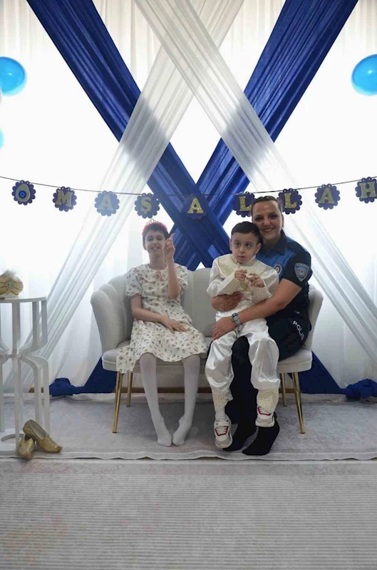Erzurum’da polis ekipleri örnek bir davranışın altına imza atarak, engelli çocuğun sünnet düğününde aileyi yalnız bırakmadı.