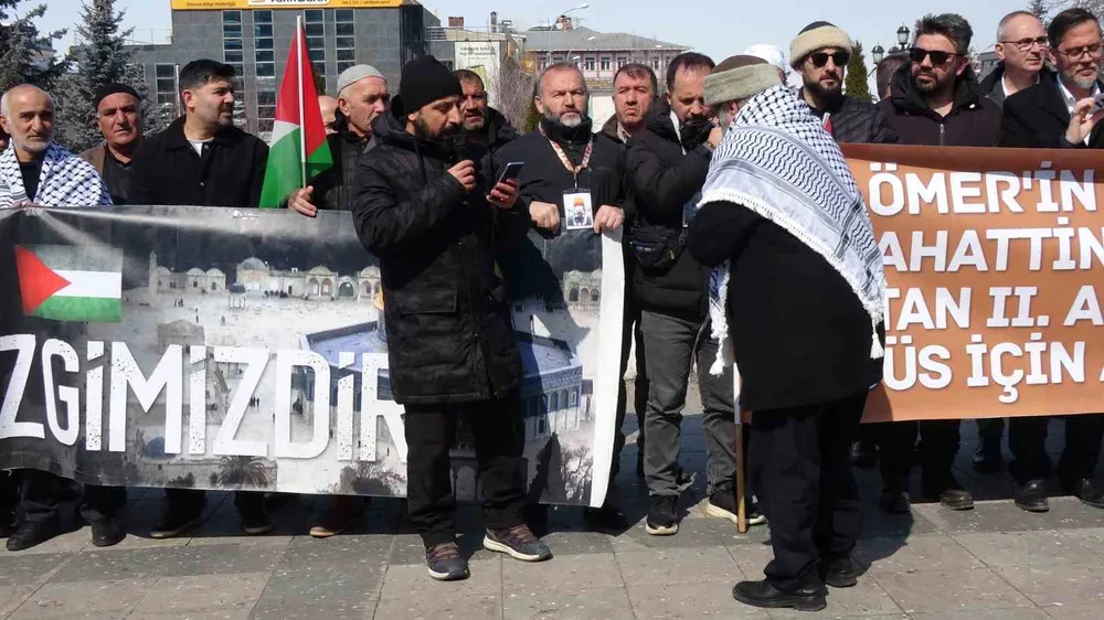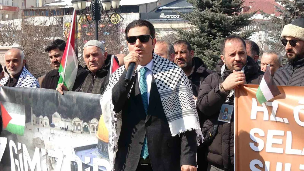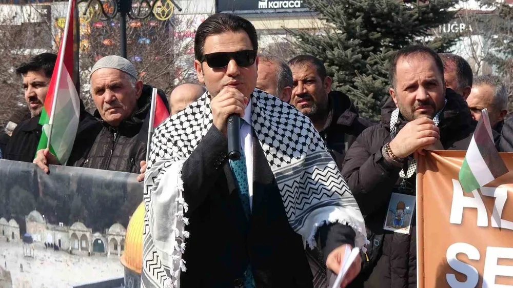 "Kudüs’ün ve Mescid-i Aksa’nın özgürlüğüne sahip çıkmak, mazlum Filistin halkının yanında olduğumuzu haykırmak için buradayız" diyen ESTP Başkanı Kavaz, "İslam coğrafyasının dört bir yanında, çocuklar tonlarca ağırlıktaki bombaların hedefi oluyor. Dün Bosna’da, Çeçenistan’da, Afganistan’da, Arakan’da, Suriye’de ve Irak’ta dökülen kan; bugün Sudan’da, Lübnan’da, Doğu Türkistan’da, Yemen’de, Gazze’de ve İran’da dökülmeye devam ediyor. Coğrafyalar değişiyor, takvimler değişiyor ancak ölenler hep aynı; masum çocuklar, kadınlar ve siviller. Fail belli, silahlar belli, bombaların üzerindeki imzalar belli. ABD ve İsrail menşeli bombalar şehirleri yerle bir ederken, bizler hâlâ büyük düşmanımız olan "parçalanmışlığı" besliyoruz. Emperyalist güçler İslam coğrafyasını adım adım işgal edip, çocuklarımızı hayattan koparırken; anne babalar evlatsız, evlatlar anne babasız kalırken, bizler enerjimizi ve birliğimizi mezhep kavgaları, etnik tartışmalar ve çekişmelerimizle tüketmeyelim" dedi.