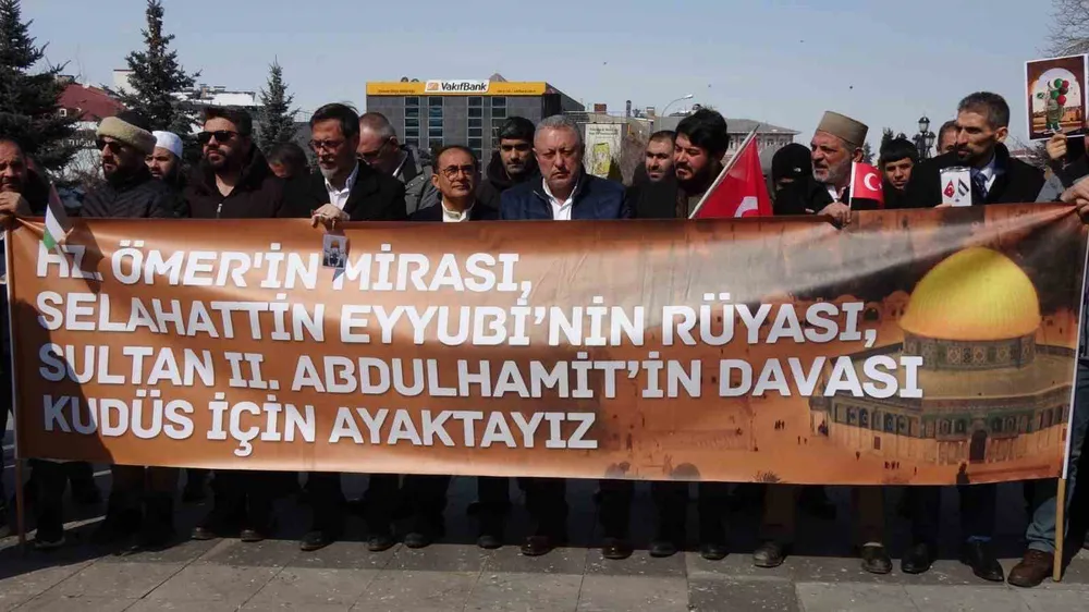 Erzurum Sivil Toplum Platformu üyeleri, Kudüs ve Aksa’nın özgürlüğü için yürüdü