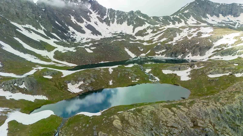 Erzurum’un İspir ilçesine bağlı Yedigöller bölgesi doğaseverlerin uğrak mekanı oldu. Haziran ayına girilmesine rağmen karın beyazı ve doğanın yeşil tonlarıyla muhteşem bir görsel şölen oluşturan Yedigöller, fotoğrafçıları hayran bıraktı.