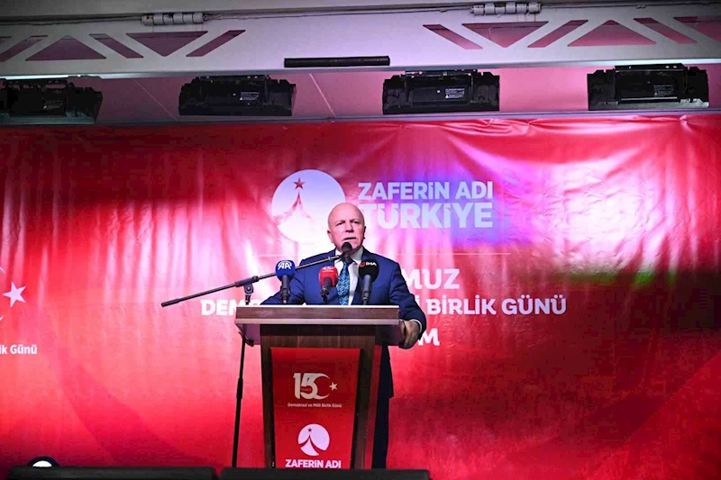 "Bilindiği gibi o gece tüm millet olarak ’İslam ümmetinin son kalesi düşmesin’ diyerek fert fert ay yıldızlı bayrağımıza sancak olduk" diyen Başkan Sekmen, "Bugün işte o kaleyi daha da sağlamlaştırmak için Terörsüz Türkiye hedefiyle kararlılıkla ilerliyoruz. Bu hedef sadece bir güvenlik politikası değil; milletimizin istiklal ve istikbali için inşa edilen bir barış düzenidir. Gözbebeğimiz, Dünya liderimizin o gün yaptığı çağrıyla meydanlara indik, mermilere set olduk, can verdik, ’Din-i Mübin İslam’ için, Allah’ın vaadi için şehit olduk, bu kutsal mücadelede gazilik unvanına erişen kahramanlarımız da oldu. 15 Temmuz Demokrasi ve Milli Birlik Günümüz vesilesiyle şunu ifade etmek istiyorum ki; 15 Temmuz şehitlerimizi namusumuz olarak belleyecek, gazilerimizi ise daima onur kaynağımız bileceğiz" diye konuştu.