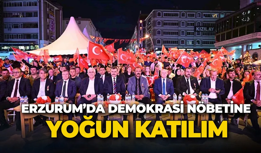 Cumhuriyet Caddesi üzerinde polisevi önünde düzenlenen demokrasi nöbetinde mehteran ekibin konserinin ardından vatandaşlar ellerinde Türk bayrakları ile şehitleri andı. Erzurum Müftüsü Dr. Rüstem Can’ın duasının ardından konuşan Erzurum Büyükşehir Belediye başkanı Mehmet Sekmen, "15 Temmuz’da alçakları yurdumuza uğratmadık, ezanımıza, bayrağımıza na mahrem eli değdirmedik. Cenab-ı Allah’ın vaadine iman eden bu yüce millet, Pasinler’de, Malazgirt’te, Aziziye Tabyası’nda, Dumlupınar’da, Sakarya’da, Çanakkale’de ve 15 Temmuz’da da düşmana geçit vermedi ve ilelebet geçit vermeyecek" dedi.