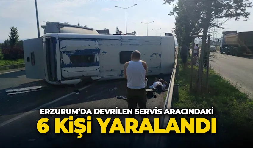 Erzurum’da kontrolden çıkarak devrilen servis aracındaki 6 kişi yaralandı.