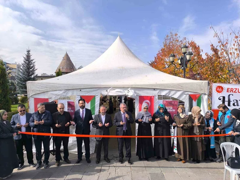 Erzurum’da Filisitin ve Gazze için Yakutiye Kent Meydanı’nda açılan hayır çarşısı, İl Müftüsü Yaşar Çapçı’nın yaptığı duanın ardından açıldı.