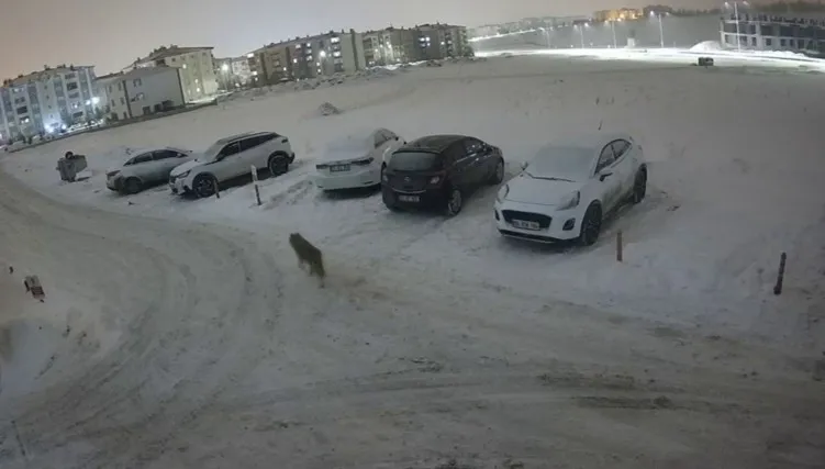 Erzurum’un Palandöken ilçesinde bir sitenin güvenlik kameralarına yansıyan kurt, çevre halkını tedirgin etti.