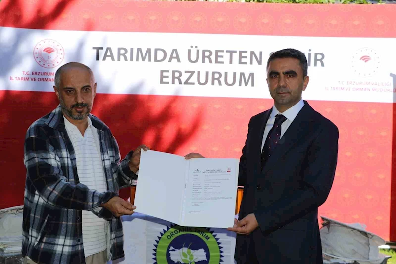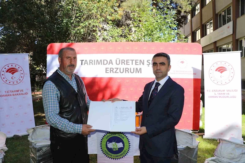 Erzurum Tarım ve Orman İl Müdürlüğü’nce kentte organik bal üretiminin desteklenmesi amacıyla yürütülen "Erzurum Yaylaları Organik Balına Kavuşuyor" projesiyle üreticilere malzeme desteği verilerek sertifikalandırıldı.